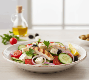 2. Ճաշի թեթևություն. Հունական ոճի հավի աղցան