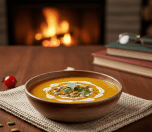 Այս տաք և քաղցր ապուրը կատարյալ է երեկոյան, երբ ցանկանում եք հանգստանալ և վայելել հարմարավետ մթնոլորտ։ Դդումը հարուստ է բետա-կարոտինով, իսկ կոկոսի կաթը տալիս է նուրբ համ։