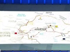 Քարտեզի վրա նշված էր Մեծ Հայք պետության սահմանները մ.թ.ա 1-ին դարում՝ 300000 կմ² տարածքով։